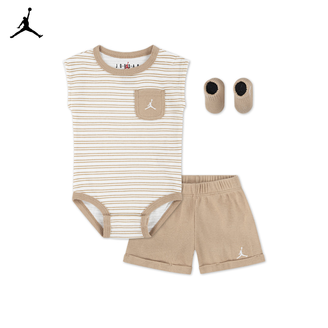 Jordan 3-Piece Essential Stripped Bodysuit, Shorts & Socks Gift Set (Newborn)